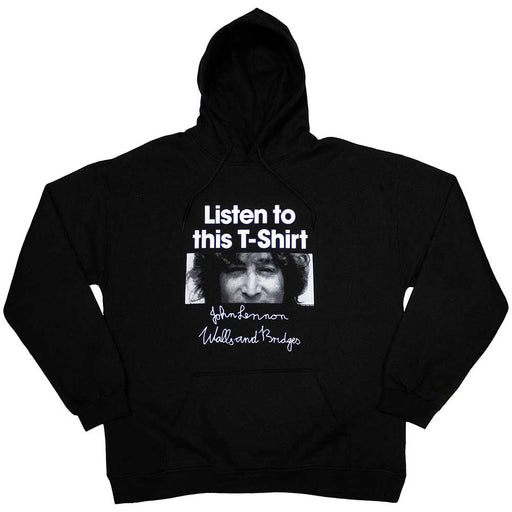 View full detailsJohn Lennon Listen To This Black Hoodie Medium Official licensed John Lennon Unisex Pullover Hoodie featuring the 'Listen To This' design motif....