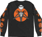 An official licensed Disney Long Sleeved T-Shirt featuring the 'The Nightmare Before Christmas All Characters Orange' design motif. This high quality Long Sleeved T-Shirt is available in a black colourway. High quality fit soft-style cotton long sleeved tee shirt with crew neck. Features front, back and sleeve printing. Tim Burton's The Nightmare Before Christmas is a 1993 American stop-motion animated musical dark fantasy film.