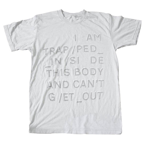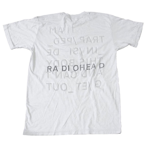 Radiohead Trapped White T-Shirt Small An official licensed Radiohead T-Shirt featuring the Trapped design motif. Material: Soft-Style Cotton.