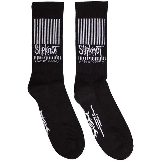 Official licensed Slipknot Terry Socks featuring the Barcode & Tribal S design motif.
