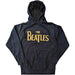 Official licensed The Beatles Unisex Pullover Hoodie featuring the 'Gold Drop T Logo' design motif. High quality Pullover Hoodie available in a navy blue colourway.