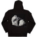 High quality black unisex pullover hoodie featuring front and back printed motif. With drawstring hood and kangaroo style pouch pocket.